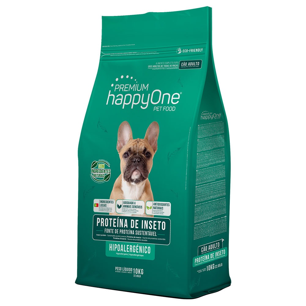 happyOne de inseto é um alimento completo e equilibrado, para cães adultos. Ajuda a suportar as defesas naturais do cão, ao mesmo tempo que promove o equilíbrio da flora intestinal e a saúde da pele e do pelo. Contém ómega-3 e antioxidantes naturais.
