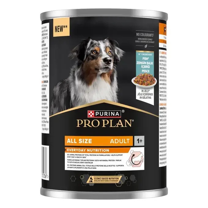 - Alimento completo húmido para cães adultos de todos os portes, Rico em Peixe.