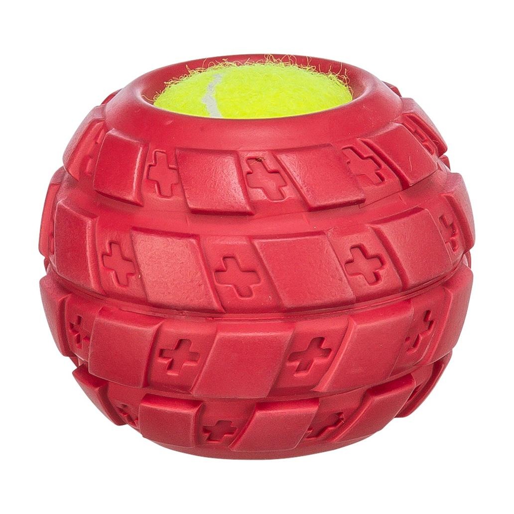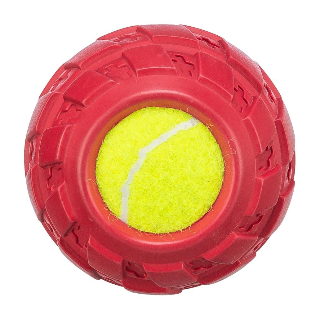 Pneu em borracha natural com bola de ténis